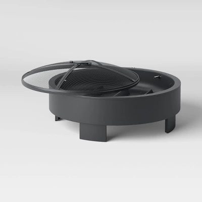 Cozy up in your favorite outdoor seating spot with this Medium Round Wood Burning Fire Pit with Legs from Project 62™. Made from weather-resistant materials that make it perfect for outdoor use, this wood burning fire pit sits on four legs to prevent it from coming in contact with the ground. It comes with a poker to help you adjust the burning wood and a fire arrestor to prevent any burning debris from flying outside. Featuring a metallic gray coated finish, this round wood burning fire pit brings modern flair to your outdoor seating area.
